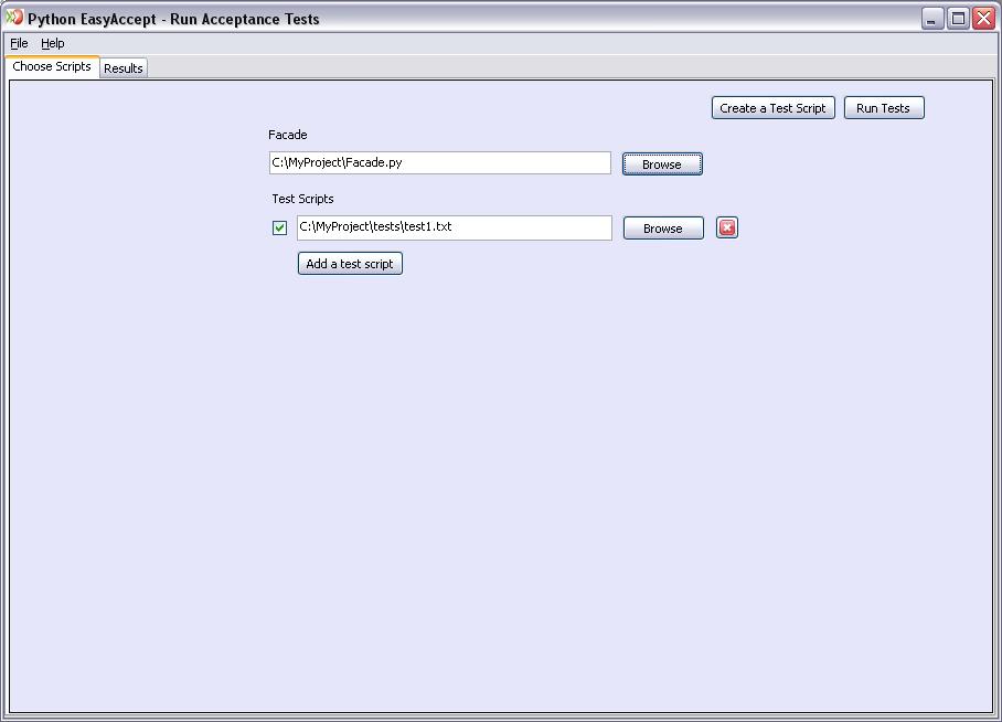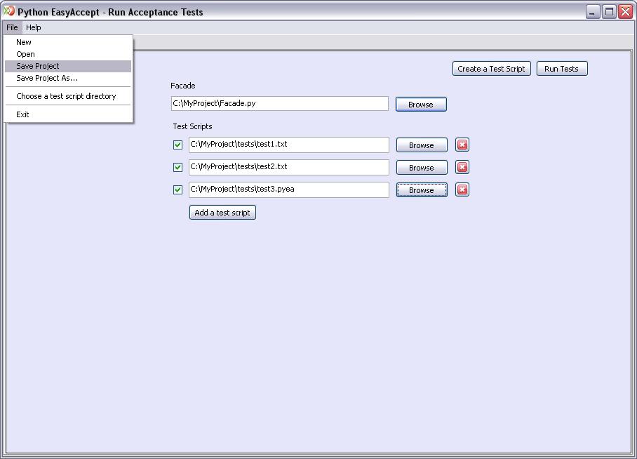 3. Python EasyAccept takes one or more script txt files and the Façade,